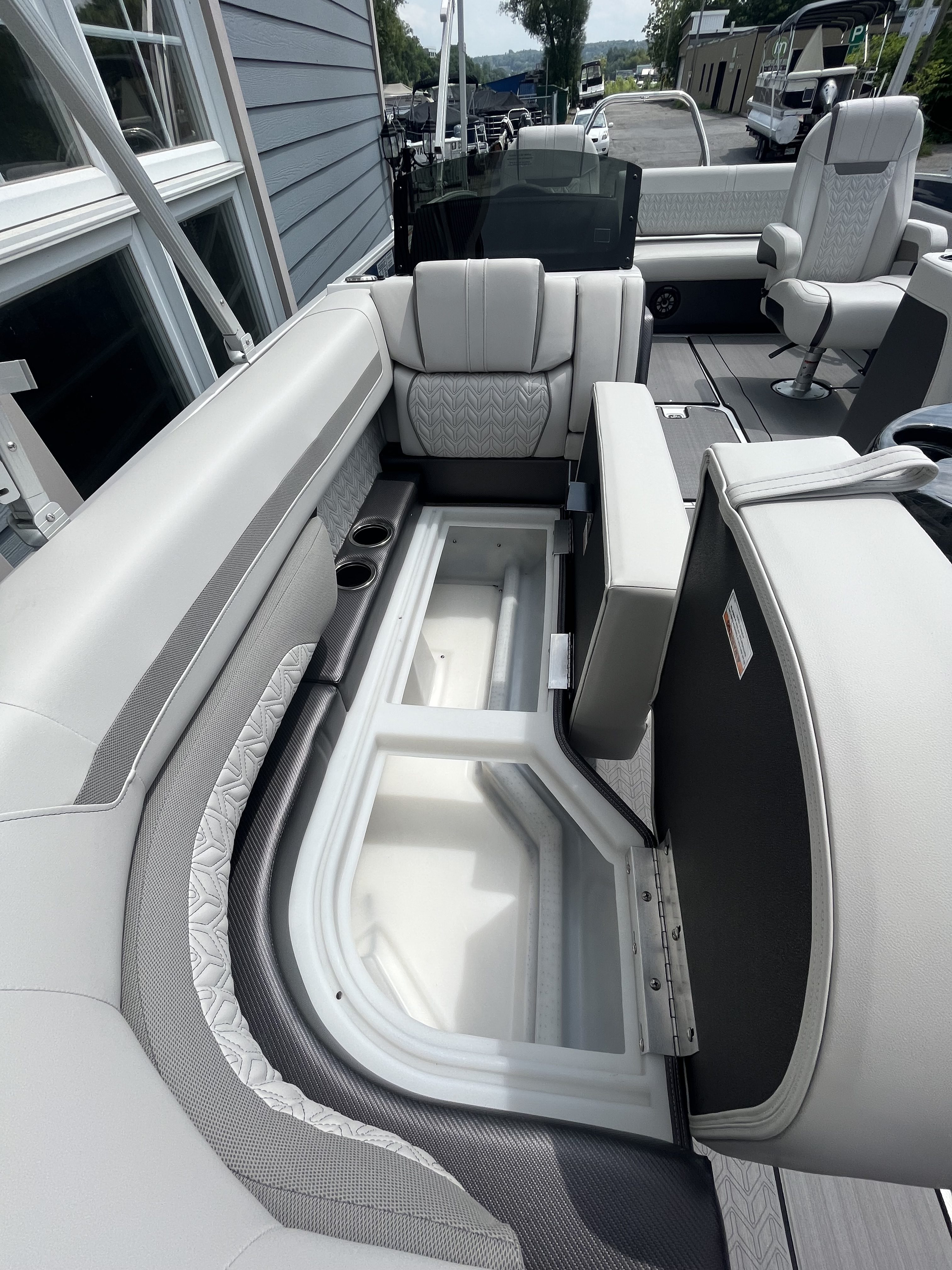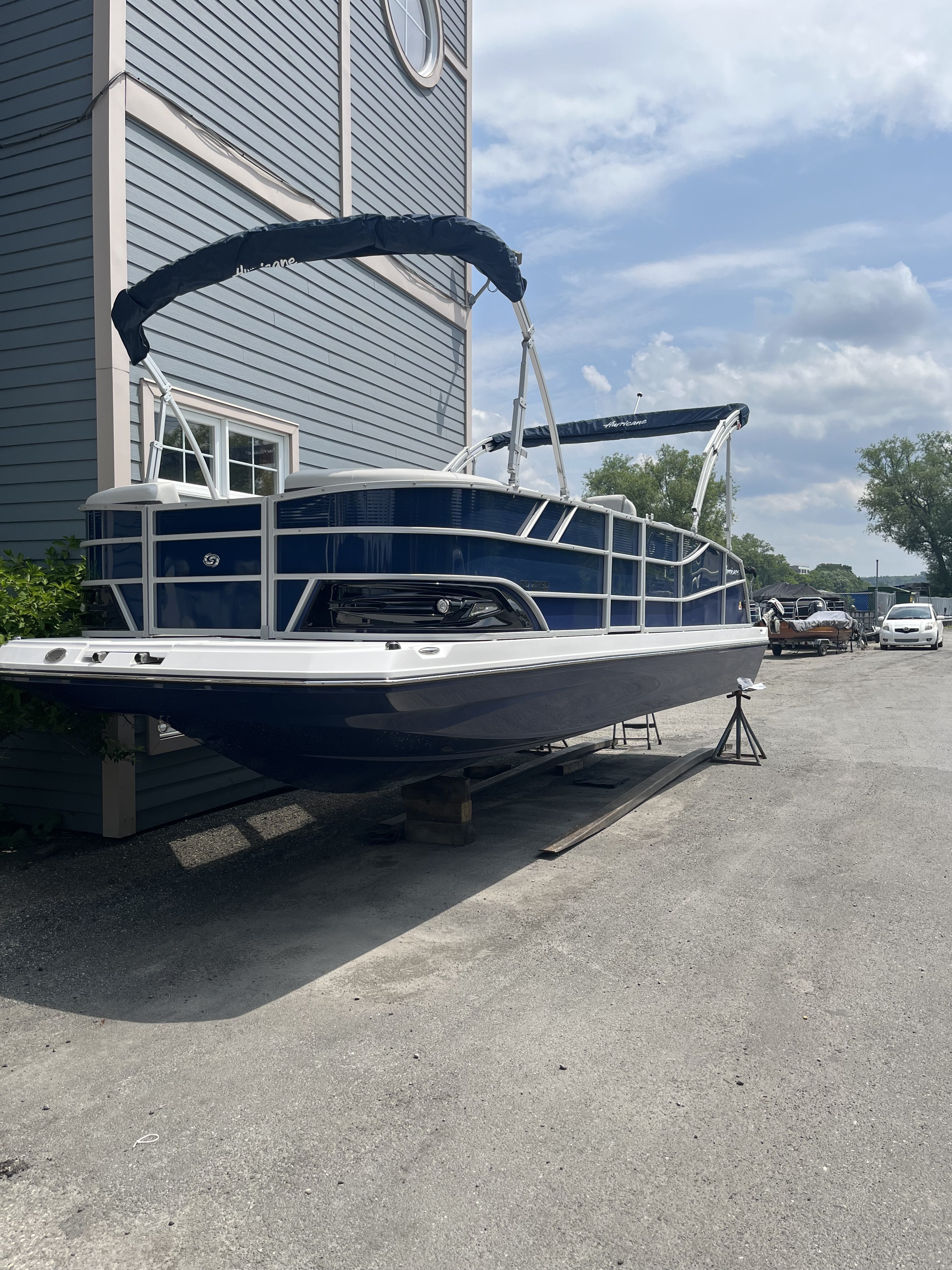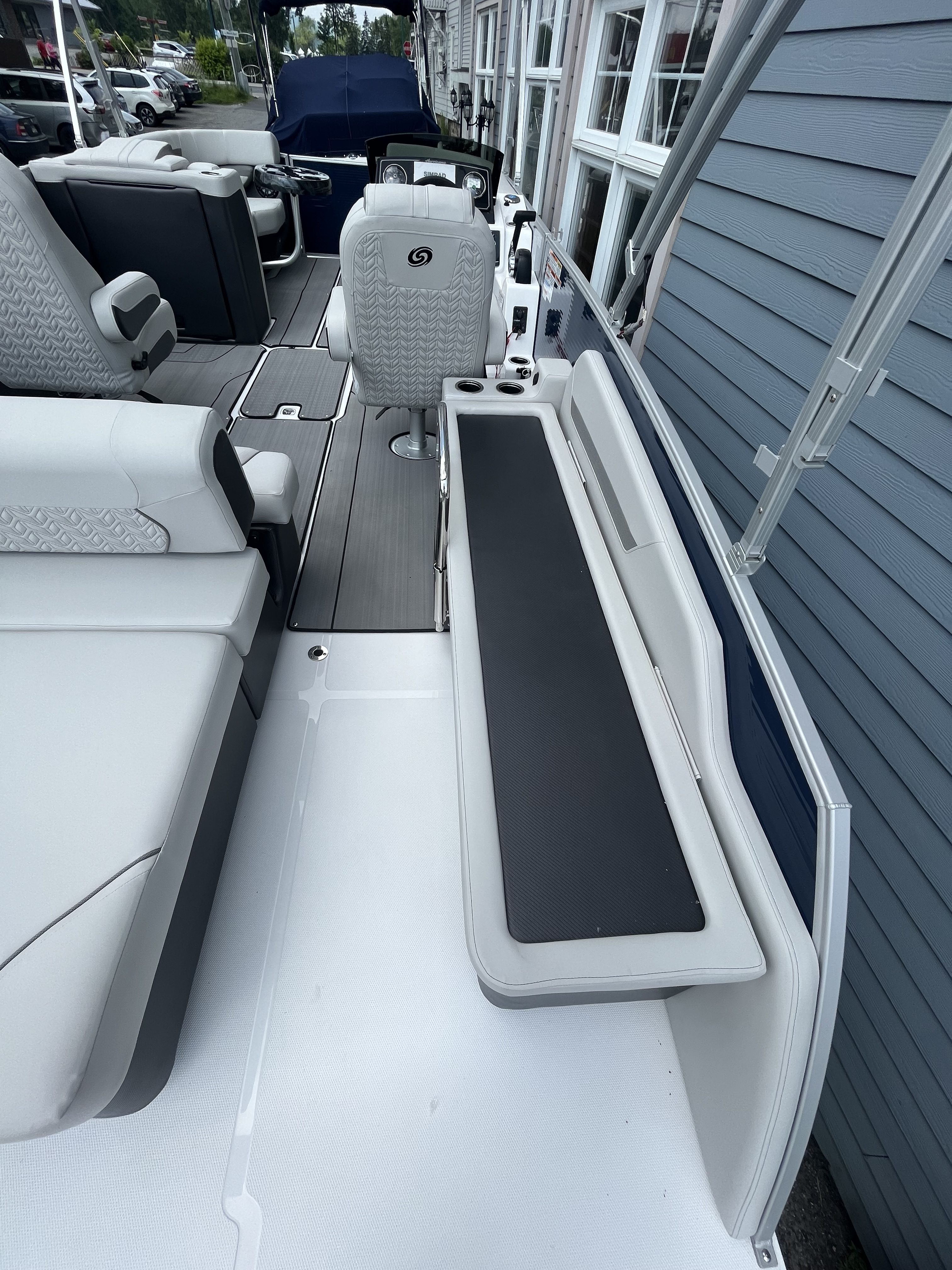 Ponton Hurricane FunDeck 2360-SFL3-OB de couleur Monaco Bleu. Avec sa construction de coque de bateau, vous pourrez profiter de l’espace intérieur réservé au ponton avec la conduite d’un bateau. Son intérieur de couleur Sport Ice Gray et sa banquette arrière avec dossier amovible vous permettra de profiter des belles journées ensoleillées.