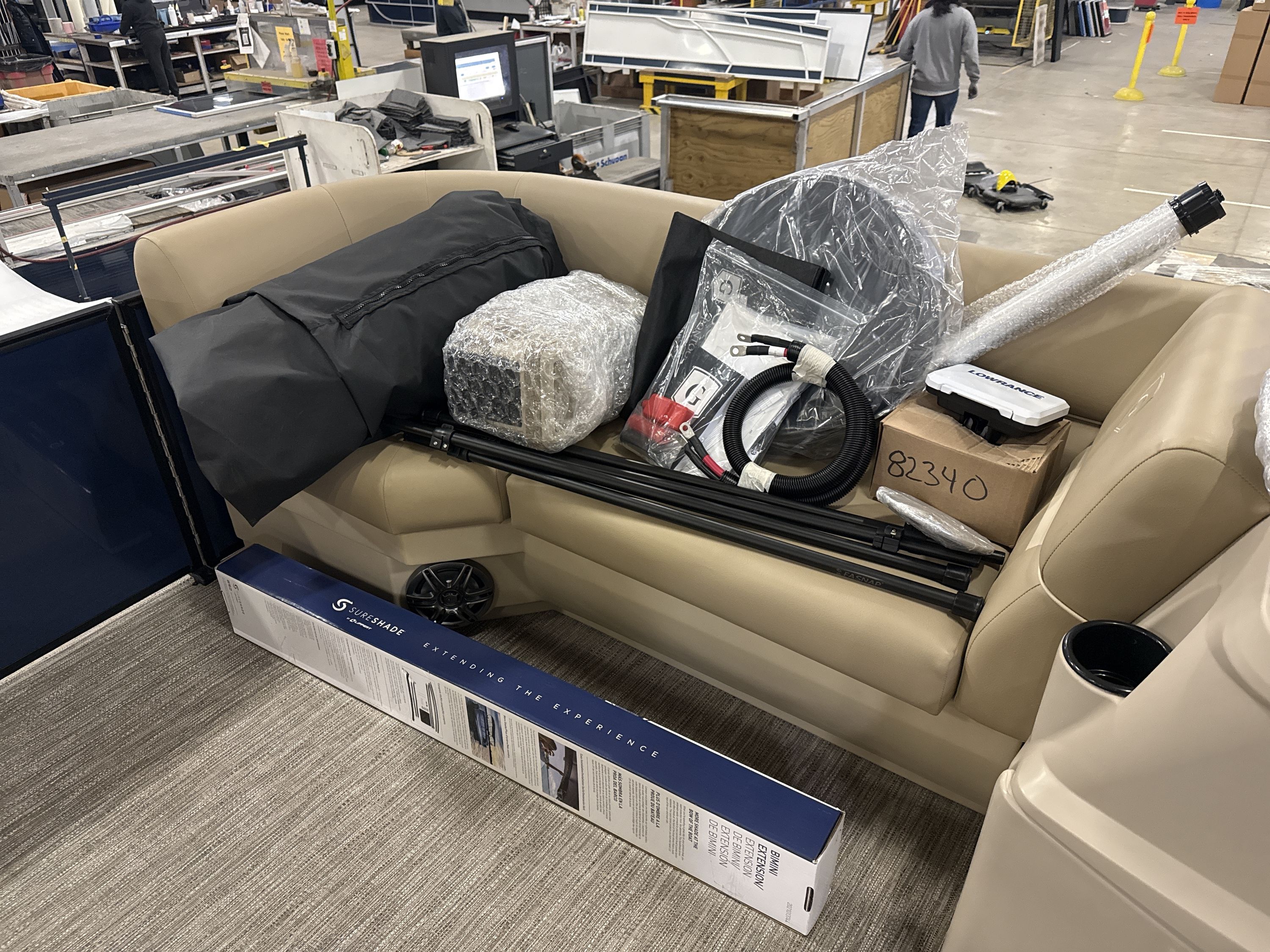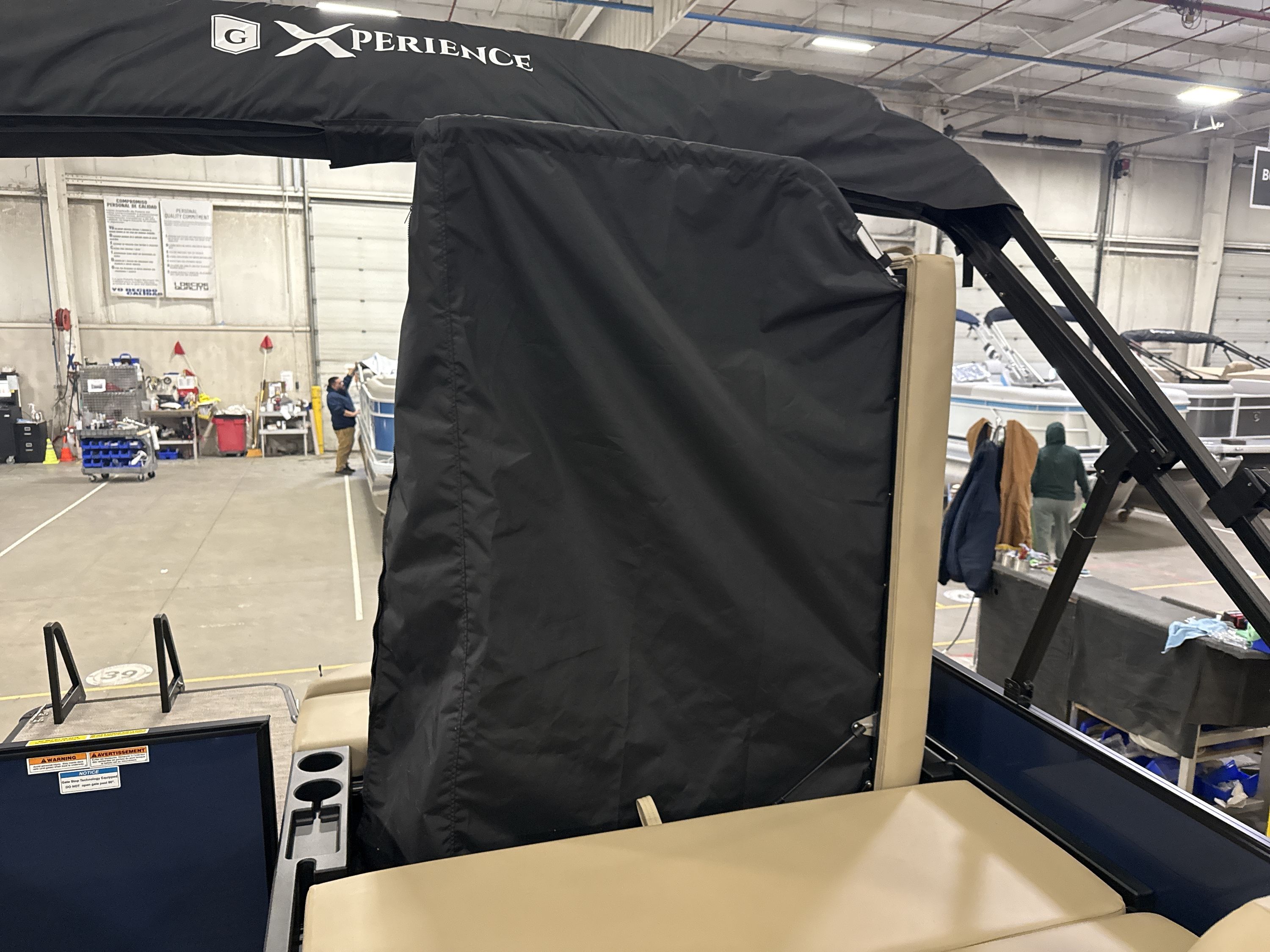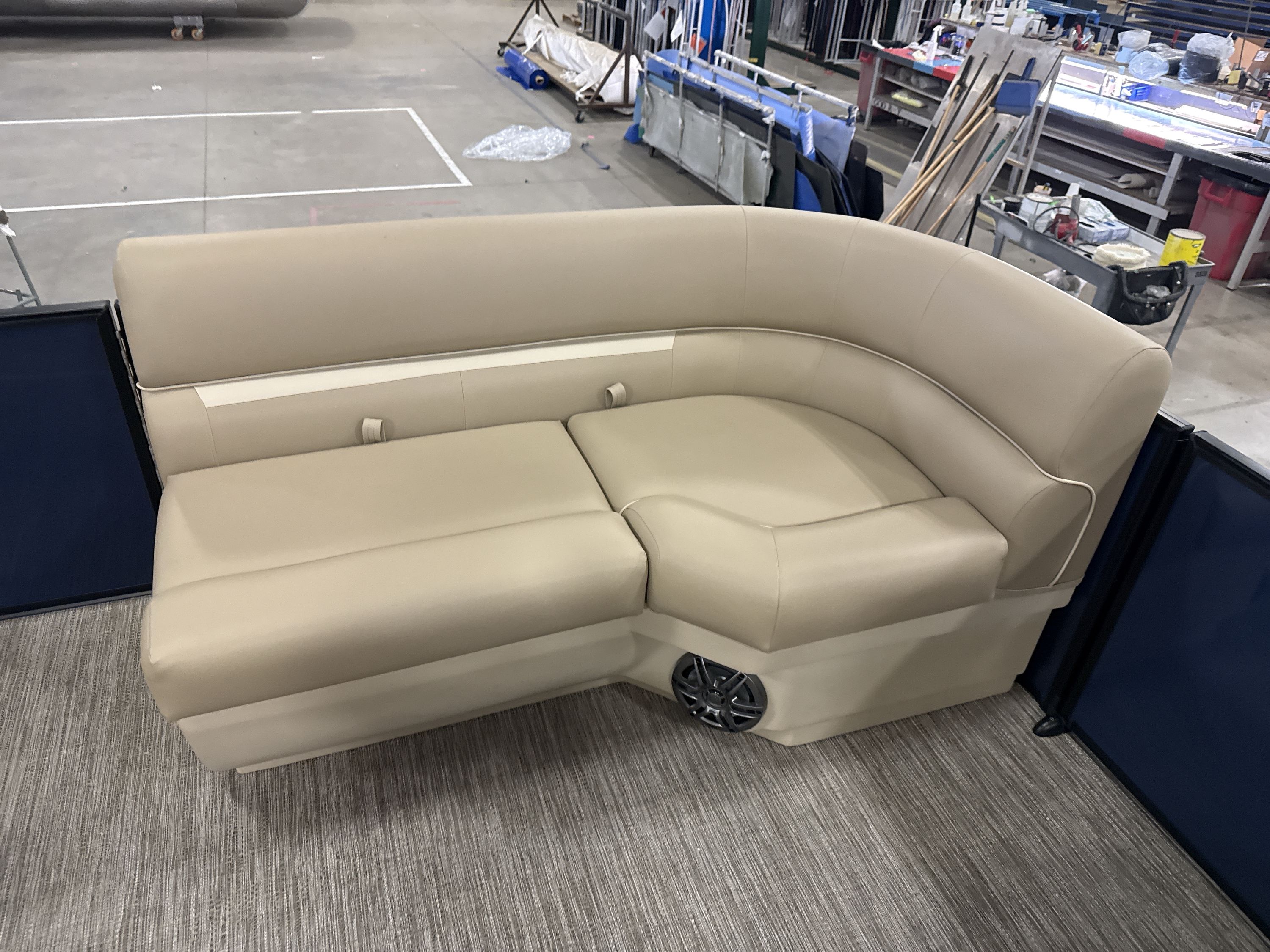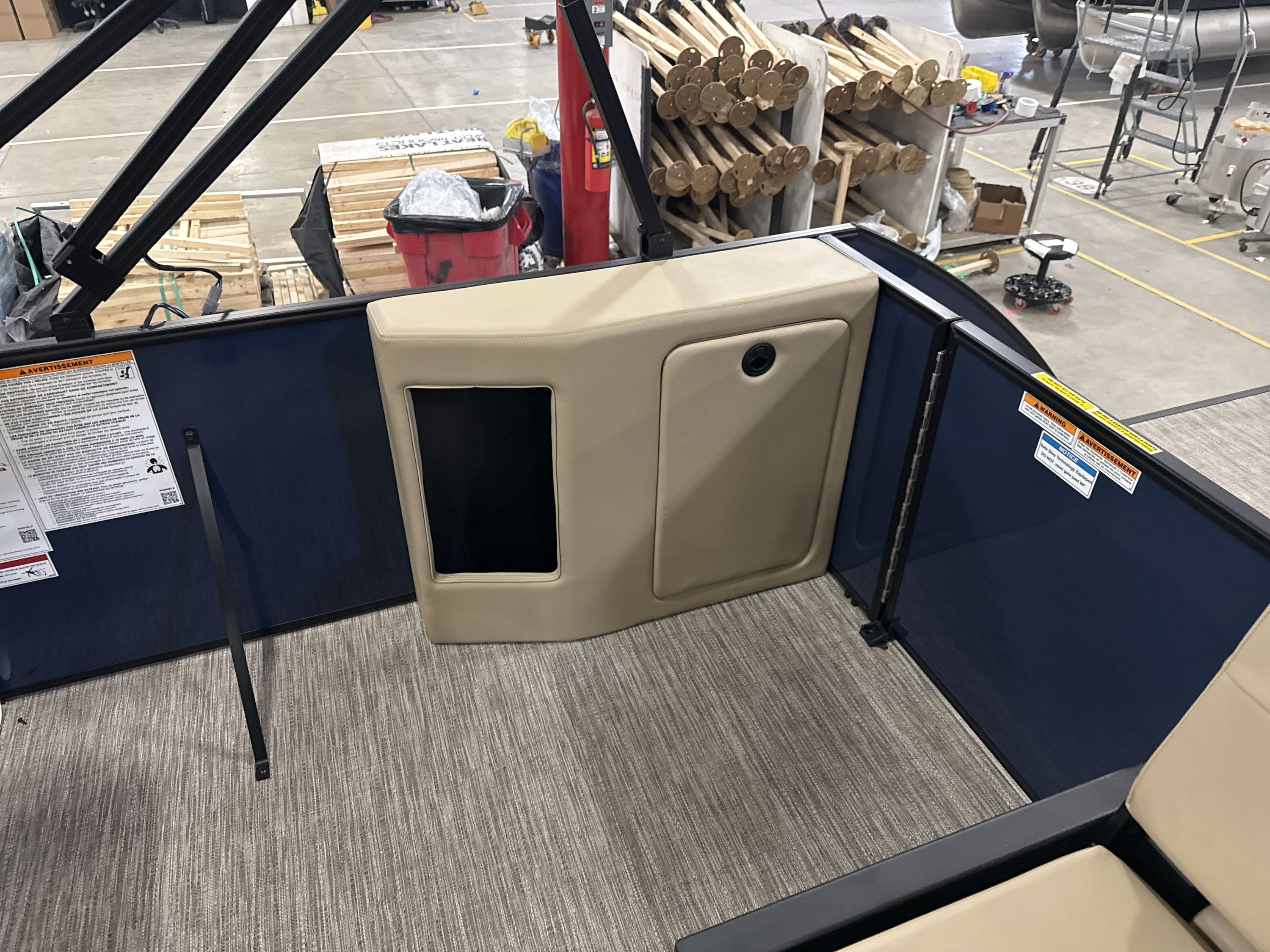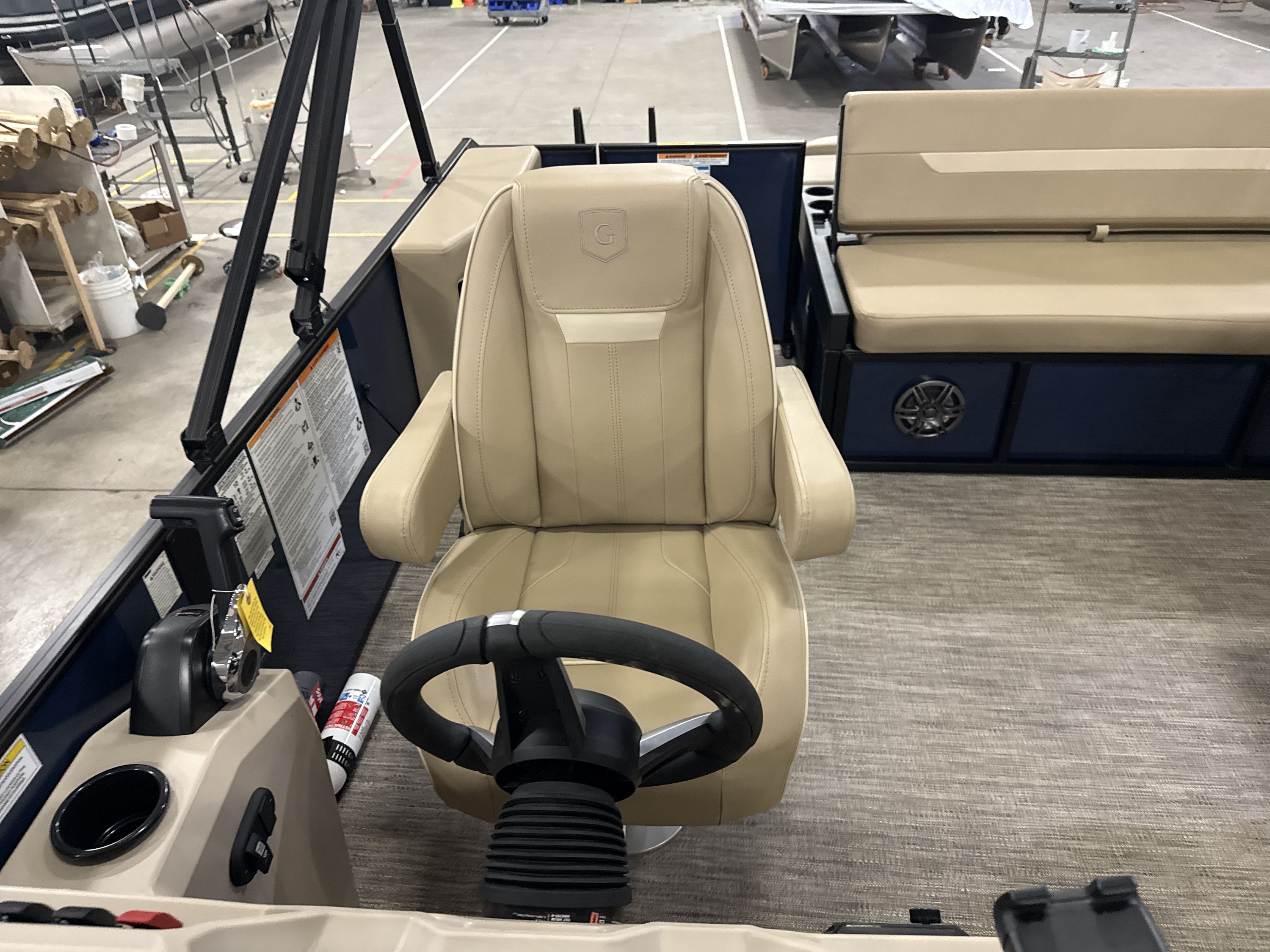 Ponton Godfrey Xperience 2286SFLX, 23 pieds de couleur Navy incluant le forfait Midnight. Avec son moteur Yamaha VF115LB et sa configuration intérieur Single Flip Lounge, au couleur Autumn Tan, il a une capacité de 11 personnes. Sa banquette amovible arrière permet d’être assis en regardant vers l’avant ou l’arrière et peut créer un lit pour profiter du soleil.
