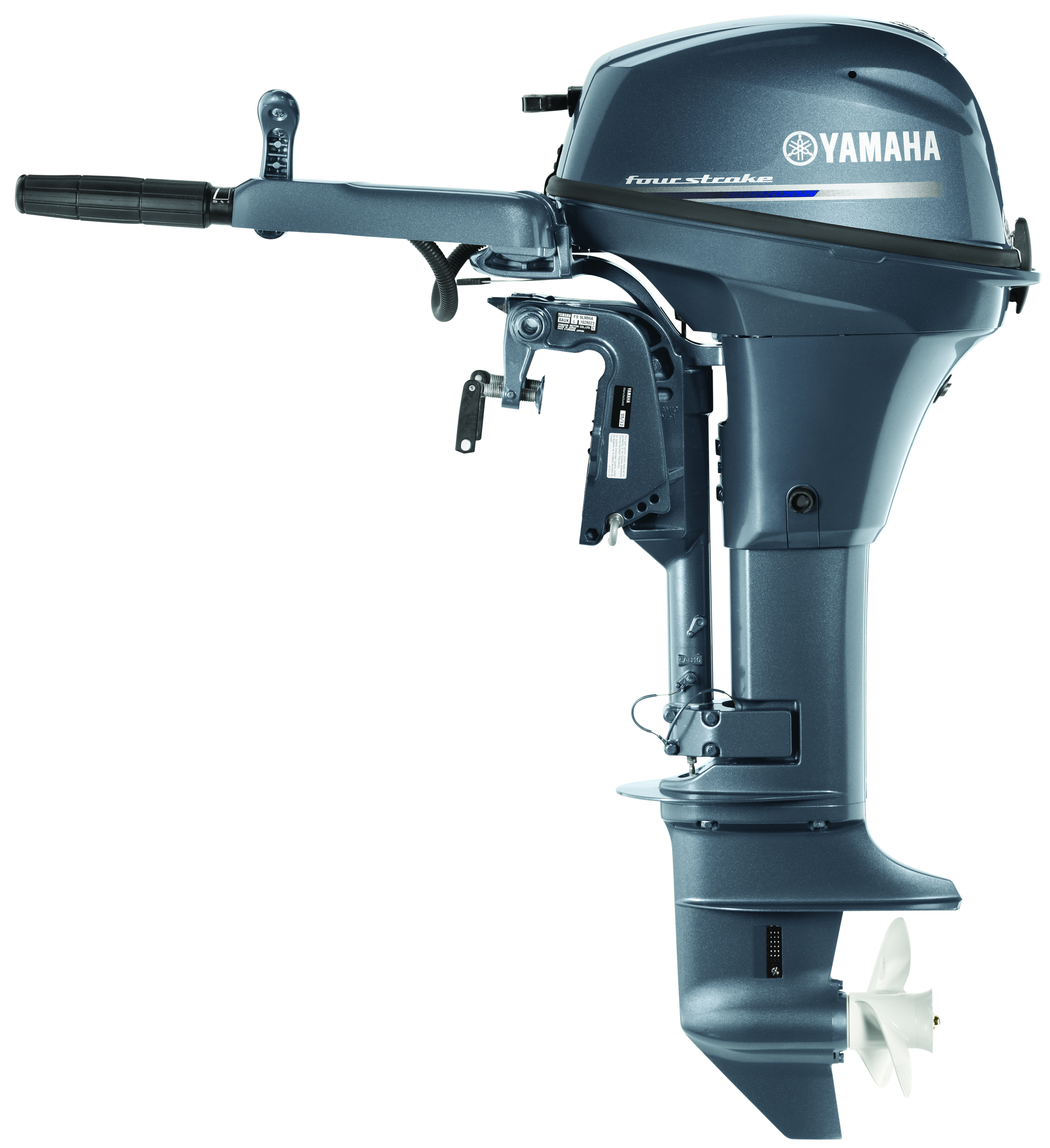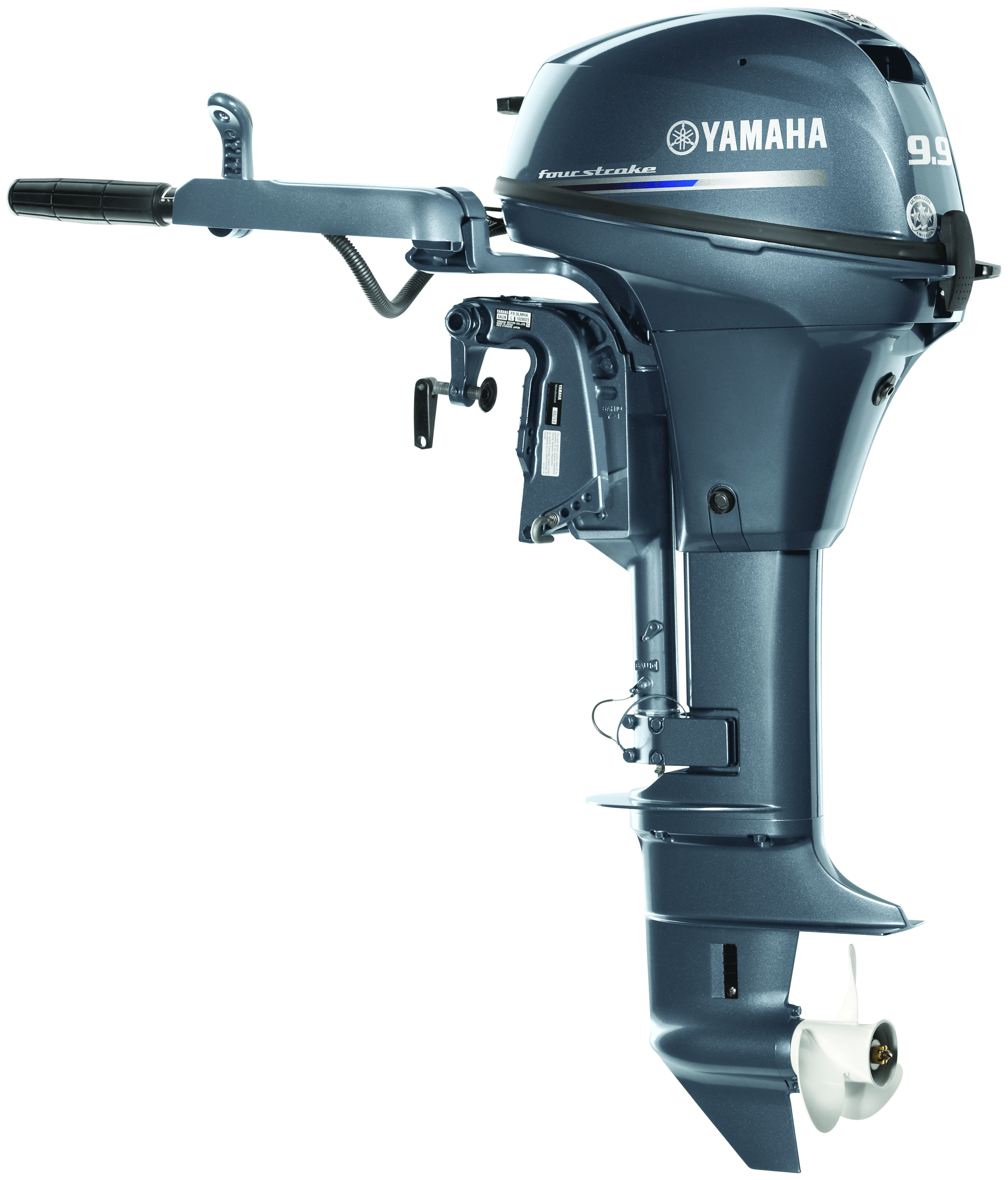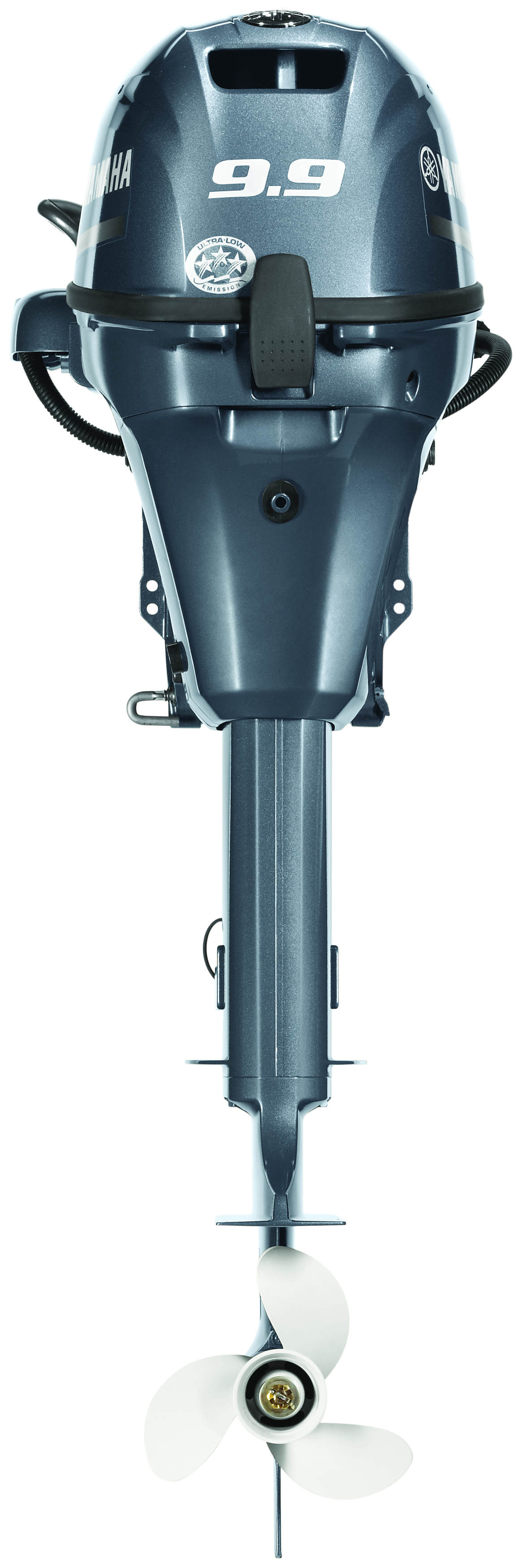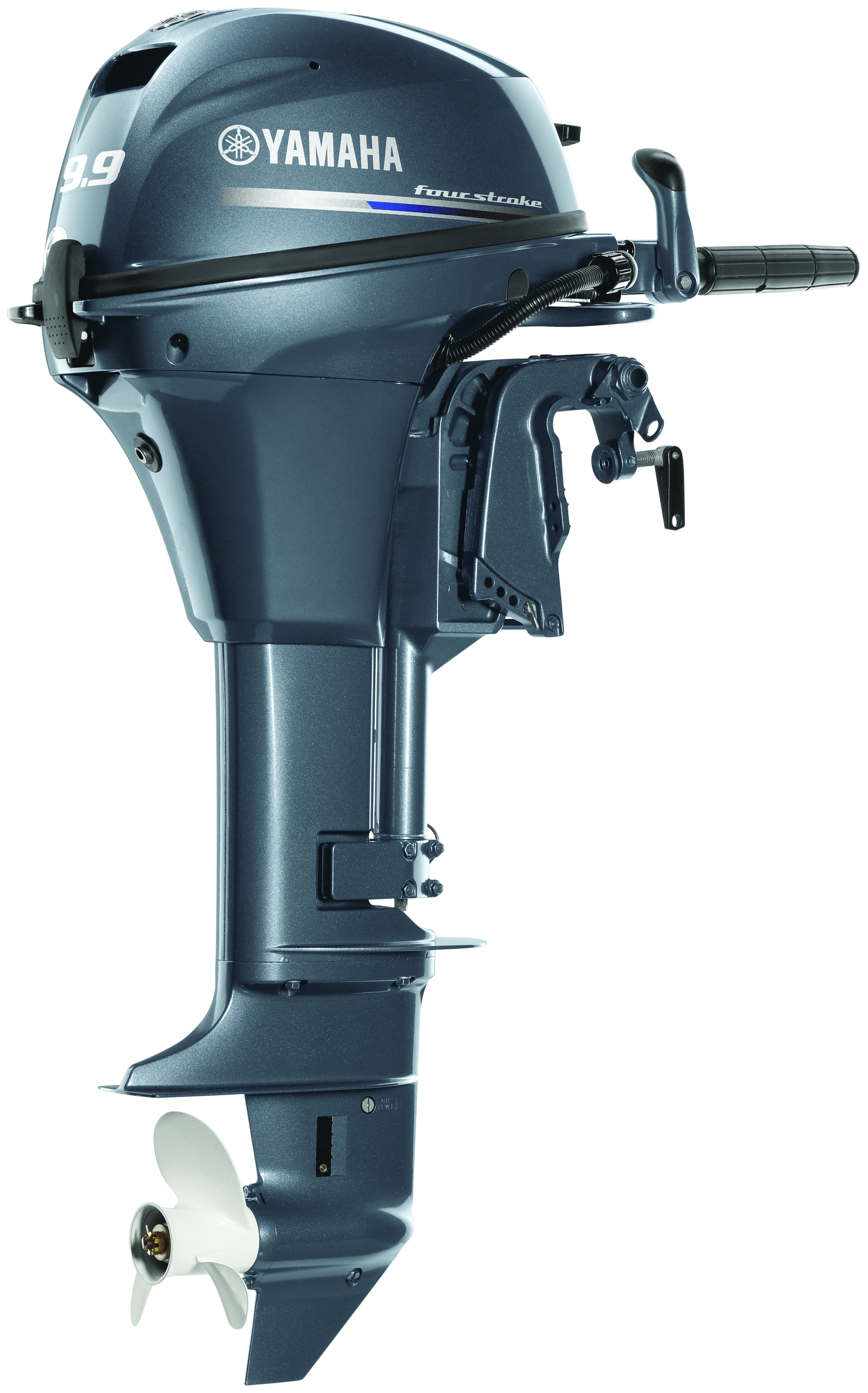 2 cylindres – Pied court (15 pouces) – Démarrage manuel – Relevage manuel – Direction poignée barre – Contrôle mécanique – Couleur : Gris Yamaha